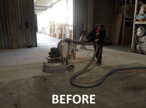 Job success story: 1700 m2 project in Gura Kalwaria, Poland. Old concrete floor of warehouse mechanically treated with 7 steps diamond tooling, densified with Ultralit Hard Premium, sealed with Ultralit Gloss. Mohs pencils showed increase of hardness from 3 in...