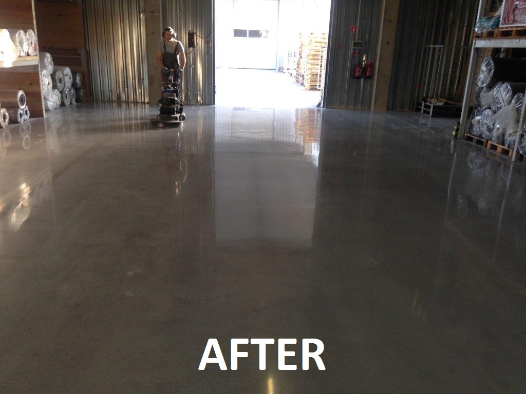 Job success story: 1700 m2 project in Gura Kalwaria, Poland. Old concrete floor of warehouse mechanically treated with 7 steps diamond tooling, densified with Ultralit Hard Premium, sealed with Ultralit Gloss. Mohs pencils showed increase of hardness from 3 in Before condition to 7 in After condition.