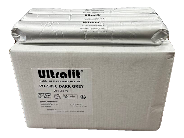 Ultralit Flex PU50FC is packaged in 600 ml soft foil tubes (20 tubes per box). There are 50 boxes / 1000 tubes on a pallet.